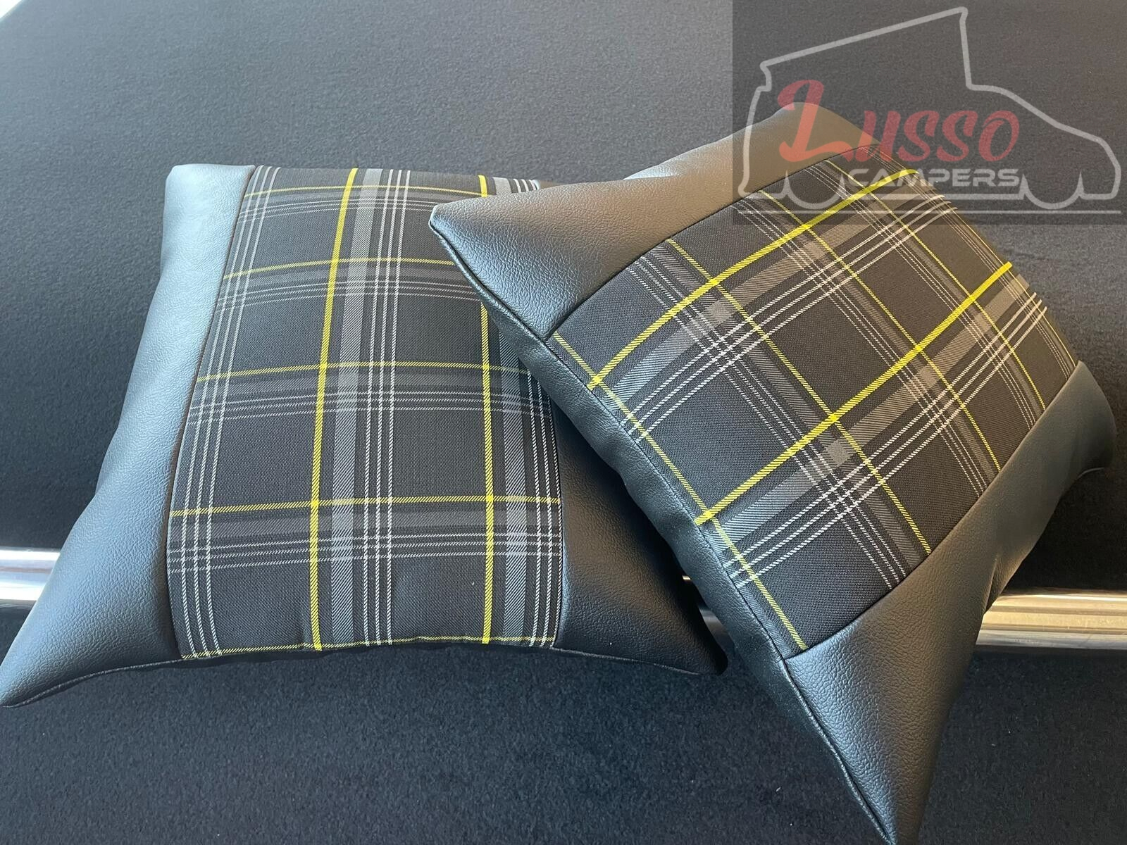 2x Scatter Cushions for Rock & Roll Beds (45cm x 45cm) GTI Tartan Yellow